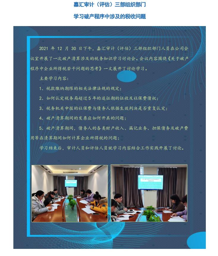 嘉匯審計(jì)(評(píng)估)三部組織部門(mén)學(xué)習(xí)破產(chǎn)程序中涉及的稅收問(wèn)題