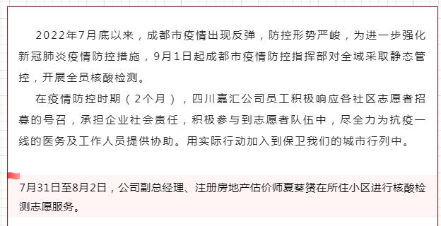 同心抗疫,守護(hù)家園”——四川嘉匯志愿者在行動(dòng)