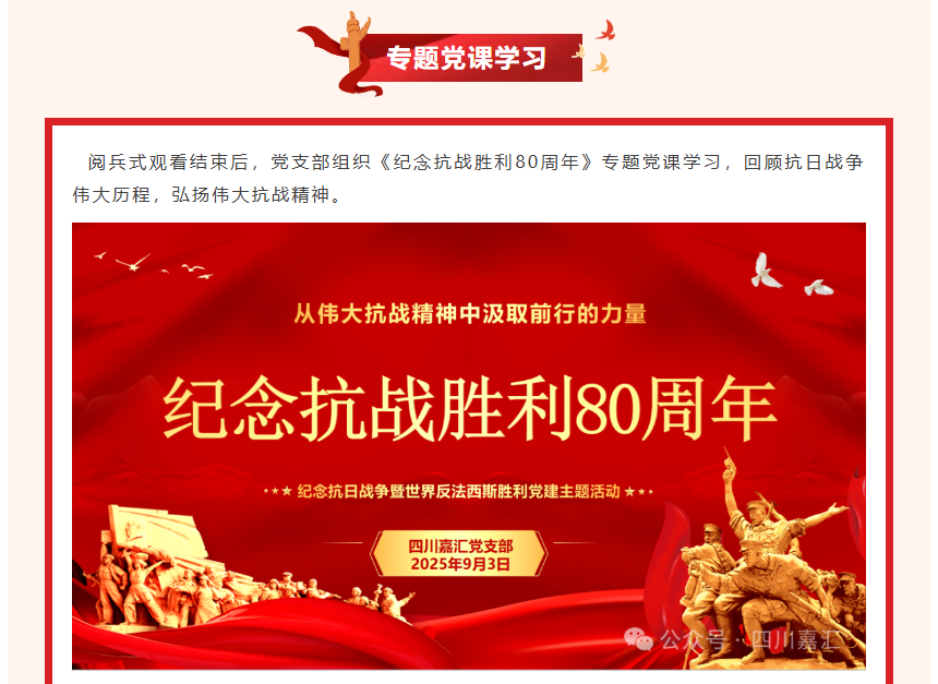 黨建||“銘記抗戰(zhàn)歷史 傳承紅色基因”四川嘉匯開展抗戰(zhàn)勝利80周年紀念活動