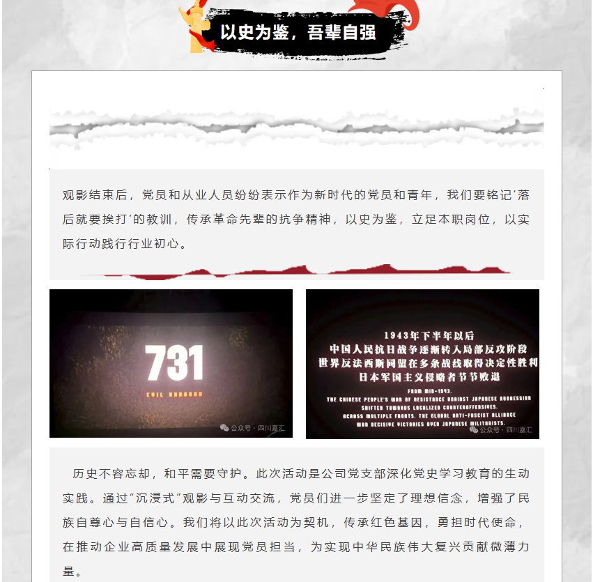 嘉匯黨建|| 嘉匯黨支部開展“銘記歷史 勿忘國恥 吾輩自強(qiáng)”紀(jì)念九一八愛國教育觀影活動